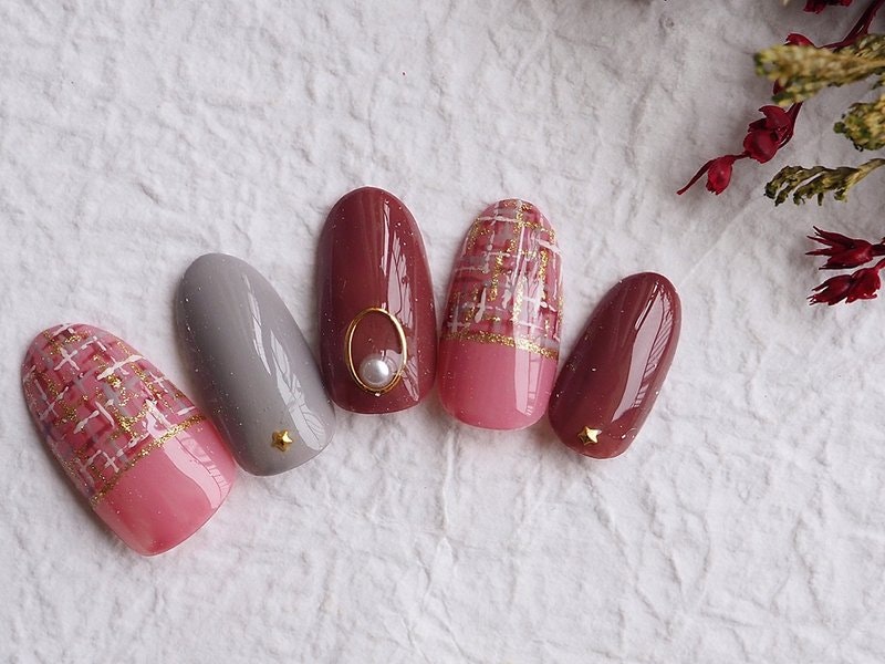 21年冬 ツイードのピンクネイルデザイン ネイルデザイン ネイルカタログ を探す Ozmallビューティ