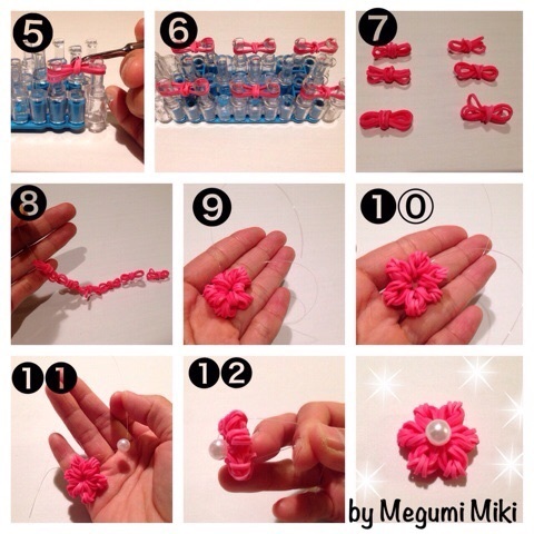 花 ニットリング8mm使用 をブレスレットへ Rainbowloom Rainbowloomer Monstertail Funloom Loombands Rubberband Funfunloomband レインボールーム モンスターテイル ファンルーム 花 モチーフ Flower Rainbow Loom Handmade Bracelets